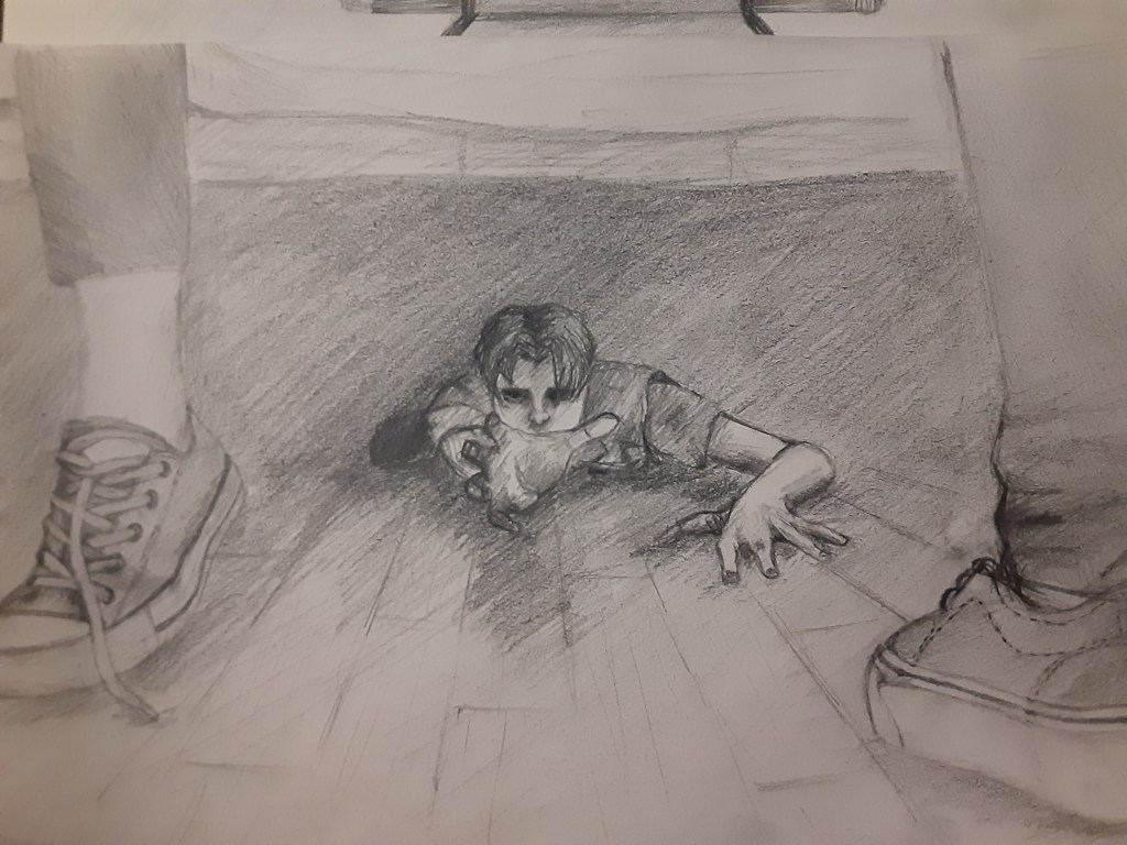 Isa s’empressa de la suivre et, arrivée près d’elle, lui agrippa la main pour éviter de la perdre dans le noir. Elles gravirent l’escalier en silence, Léonie éclairant les marches devant elles, et, sur un signe de tête d’Isa, se dirigèrent cette-fois ci à gauche une fois en haut, à l’opposé des toilettes, en longeant le mur. Jetant un coup d’œil dans chaque pièce, elles parvinrent à l’extrémité du couloir, juste en avant de la porte vitrée d’un balcon qu’un cadenas empêchait d’ouvrir. Sur le côté, cependant, se trouvait un petit escalier sombre menant vers l’étage supérieur qu’emprunta Léonie.