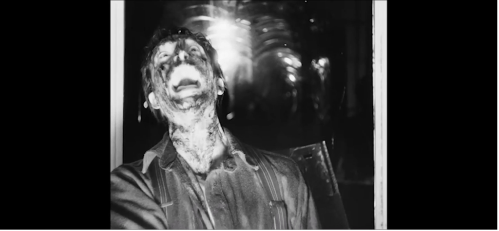 C’est exactement ce que fait Eggers en nous enveloppant de cet épais brouillard, nous coupant ainsi de tout monde environnant. Le brouillard rappelle la solitude et l’étrangeté de l’île. Le contraste clair-obscur est également présent et ajoute de la théâtralité à la scène. Grâce au contraste on voit de longs coulis de sang sur le corps de Winslow gisant sur le sol. Ces filaments de sang sont beaucoup plus dramatiques grâce au clair-obscur qui les rend beaucoup plus apparents. L’utilisation de l’expressionnisme rend ici la scène extrêmement dramatique. Eggers réussit à réutiliser le langage cinématographique des expressionnistes allemands de l’époque afin de créer un film d’horreur qui réussit beaucoup mieux que la plupart des films d’horreurs d’aujourd’hui, probablement grâce à ce judicieux mélange de passé et de présent.