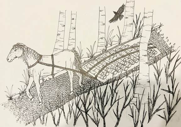 − Moi, non. Je me contente de faire mon labeur avec les autres, mais le vieux cheval le sait sûrement, lui. Il traverse la forêt chaque jour. Tu vas le croiser si tu suis ce sentier. Mais, après, dépêche-toi de partir.